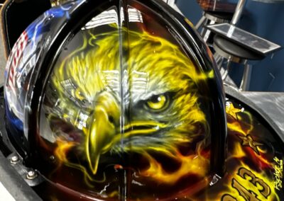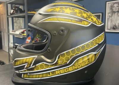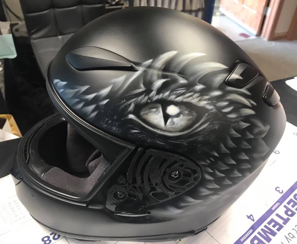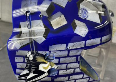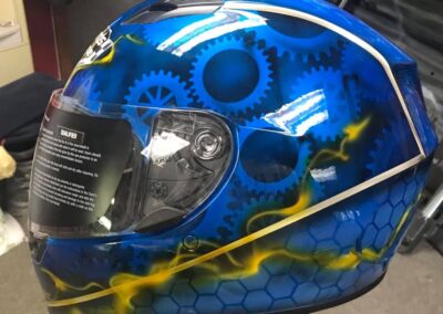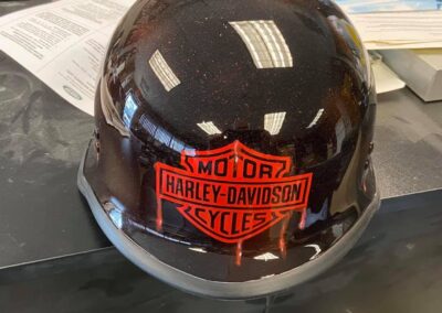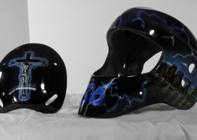 Bike helmets come in all shapes and sizes, and Psychotic Air can make yours an extension of your custom bike! Whether you’re a skull and cross bones or an American flag kinda guy or gal, our artists will complete your look with a helmet so beautiful you’ll want to jump on your bike in the snow or rain just to wear it.